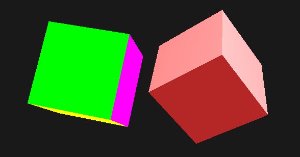 - The cube on the left is painted with a simple shader, the cube on the right is lit. Tomorrow, we make a fancy shader.