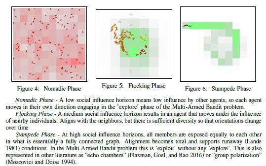 - What could be interesting it to overlay the other graphs on the nomad-produced map. We could see the popular (exploitable) sections of the flocking population while also seeing the areas visited by the stampede. The assumption is that the stampede is engaged in untrustworthy behavior, so those parts would be marked as ‘dangerous’, while the flocking areas would marked as a region of ‘conventional wisdom’ or normative behavior.