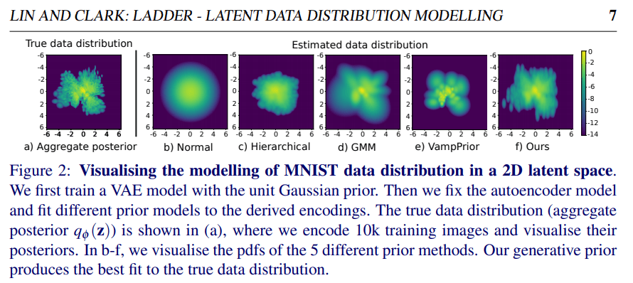 - In this paper, we show that the performance of a learnt generative model is closely related to the model’s ability to accurately represent the inferred \textbf{latent data distribution}, i.e. its topology and structural properties. We propose LaDDer to achieve accurate modelling of the latent data distribution in a variational autoencoder framework and to facilitate better representation learning. The central idea of LaDDer is a meta-embedding concept, which uses multiple VAE models to learn an embedding of the embeddings, forming a ladder of encodings. We use a non-parametric mixture as the hyper prior for the innermost VAE and learn all the parameters in a unified variational framework. From extensive experiments, we show that our LaDDer model is able to accurately estimate complex latent distribution and results in improvement in the representation quality. We also propose a novel latent space interpolation method that utilises the derived data distribution.