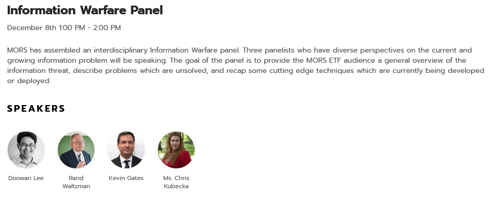 - Information Warfare panel. Started with Gerasimov, which is pretty cool