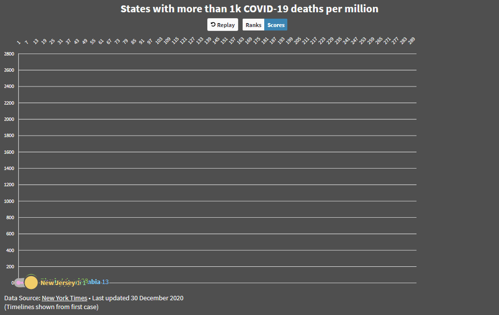 And here are the worst performing states over the duration of the epidemic. Georgia continues to be a mess. Those states at the bottom are coming up fast…