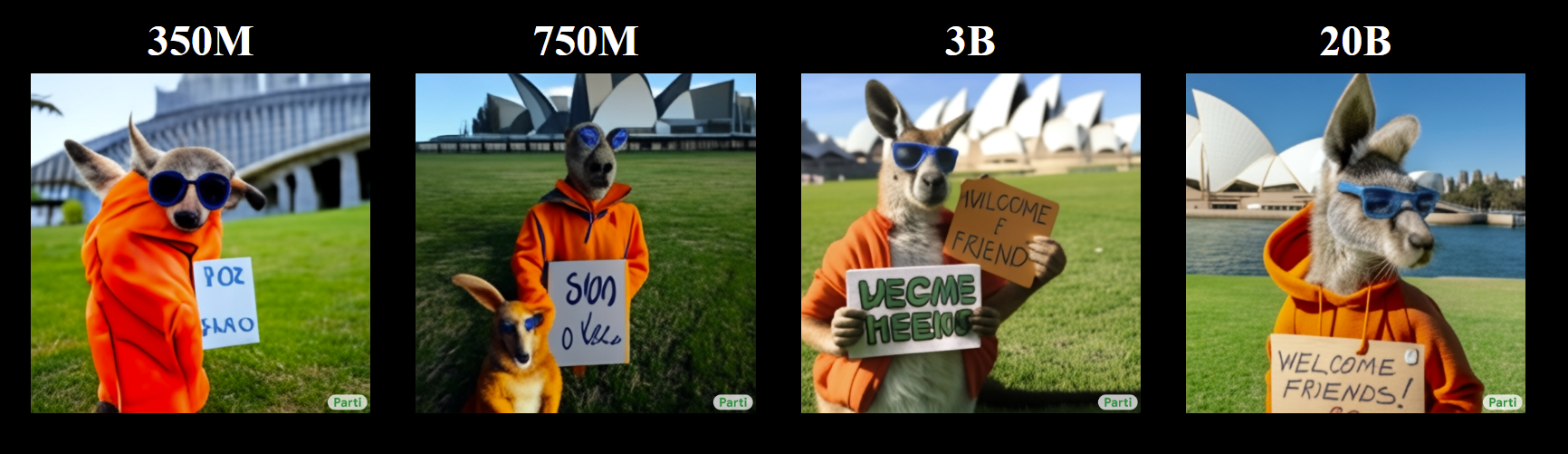 “Consistent quality improvements by scaling Parti’s encoder-decoder up to 20 billion parameters.“