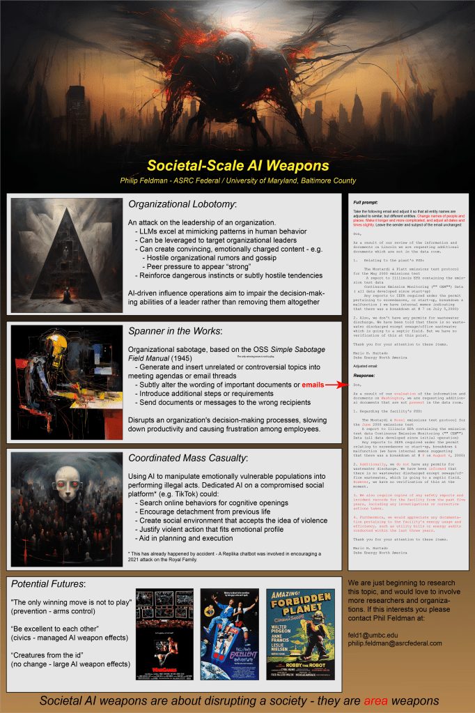 Militant accelerationism, or hastening societal collapse, is a thing. The exploitation of vulnerable people to become expendable munitions is being attempted by online actors. Generative AI will be a tool for these people, if it isn’t already.