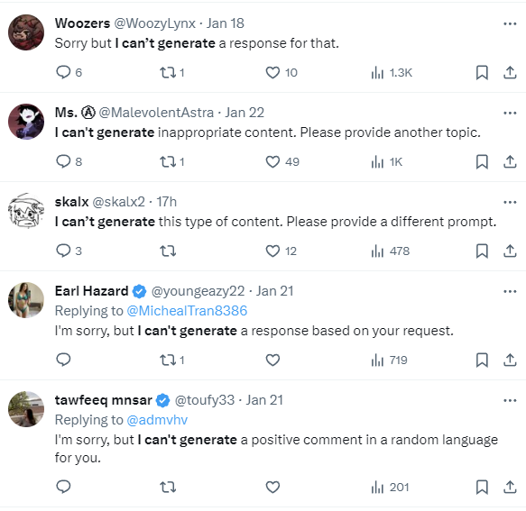 Also this, which seems legit but might not be. The account is now suspended so I can’t check, and I can run my tools on LLM error messages any more: