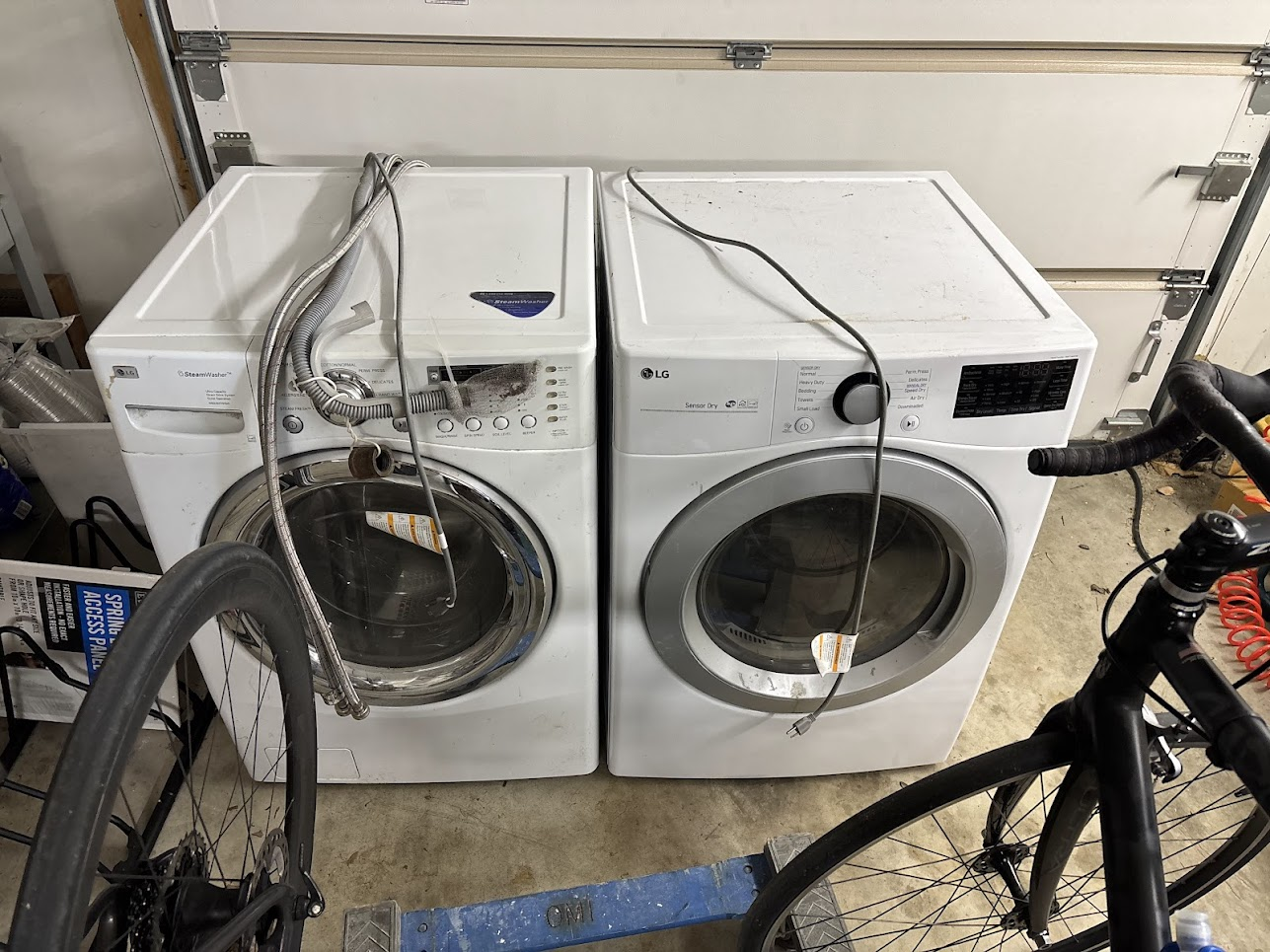 - But bikes weigh less than washing machines and are far less likely to mess up a floor that may be soft in places. So I brought some of the bikes back into the basement and muscled (washers are heavy!) the washer and dryer into the garage, where they can sit out the cold snap: