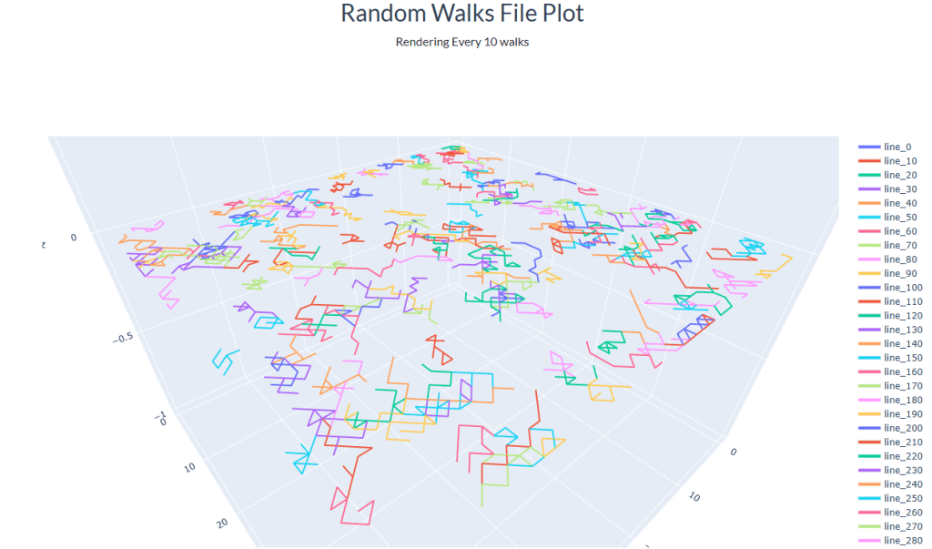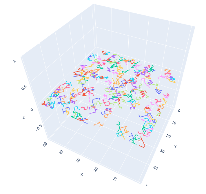 Going for a big-ish ride, since it’s been raining for the last two days. But in the meantime, this is a very cool rendering of random walks on a 2D grid: