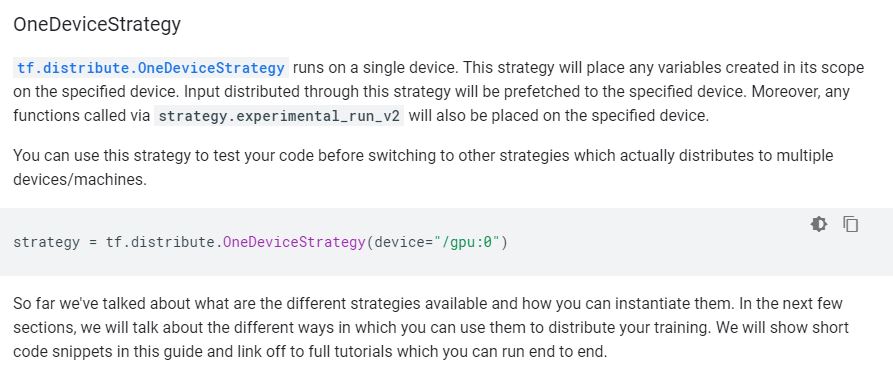 strategy = tf.distribute.OneDeviceStrategy(device="/gpu:0")