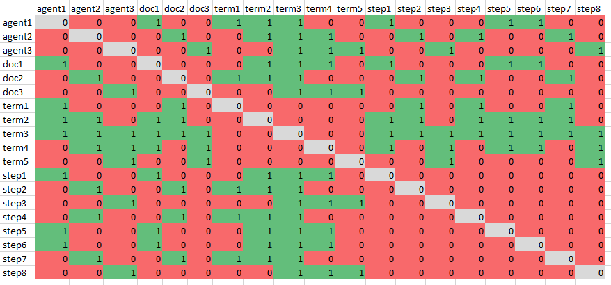- Ok, I’ve been reading the paper and if I understand it correctly, it’s pretty straightforward and also clever. It relates a lot to the way that I do term document matrices, and then extends the concept to include time, agents, and implicitly anything you want to. To illustrate, here’s a picture of a tensor-as-matrix: