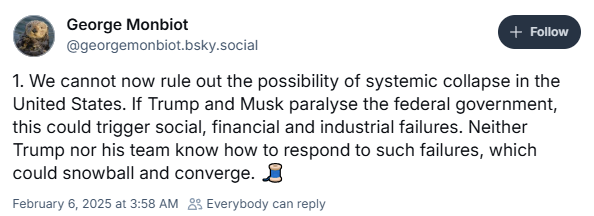 The USA is no longer considered a democracy and lies at the cusp of autocracy; it has experienced a Presidential Coup and an Adverse Regime Change event (8-point drop in its POLITY score).